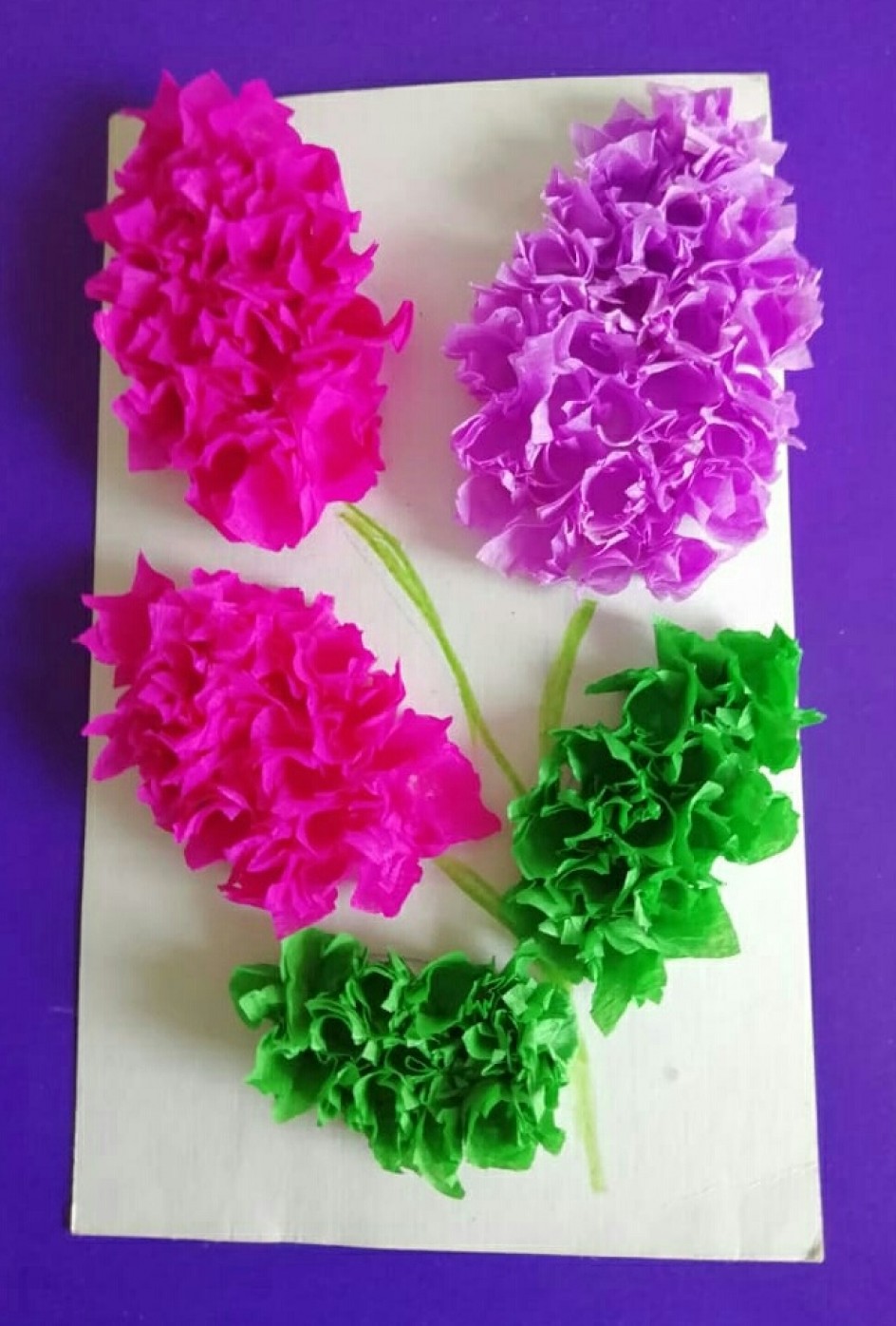 - Между бутонами оставляйте промежутки, куда будут клеиться свёртки из гофрированной бумаги.