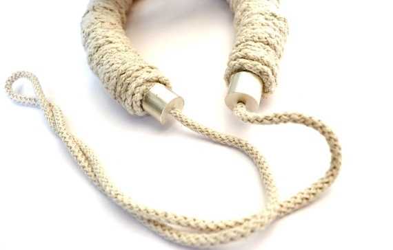 Мы также коснемся “тонкой родственницы каната” — веревки. Но ограничимся двумя ее натуральными видами — джутовой и пеньковой (из последней как раз и делают морские канаты). Веревка в роли декора будет оптимальная в тех случаях, когда вы хотите создать более изящное украшение, в том числе — для легкого аксессуара.