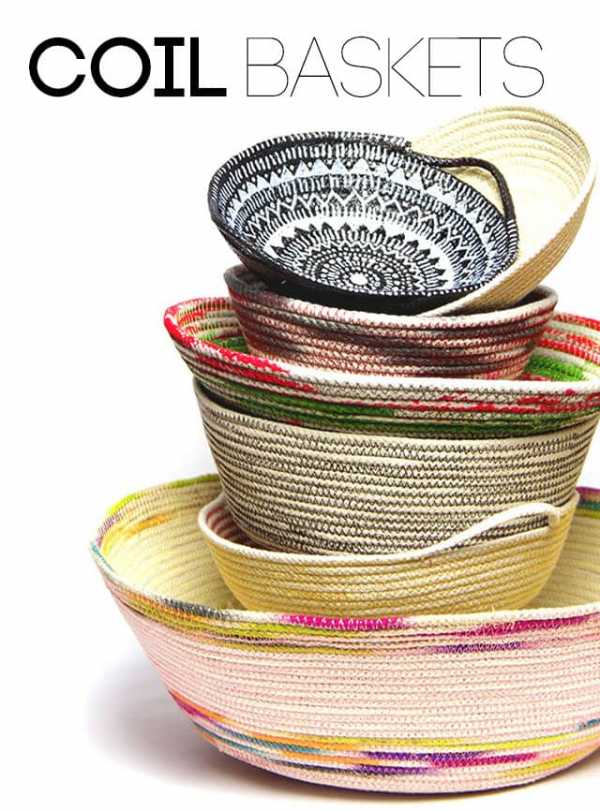 Такая корзинка делается без основы, поэтому получается мягкой, в отличие от органайзера из пункта выше. Чтобы слои держались лучше, их стоит и сшивать, используя толстые прочные нитки, и склеивать. Нитки, ко всему прочему, выполняют тут декоративную функцию. Промежутки, обмотанные нитками, могут скрывать место стыковки двух отрезков верёвки.
