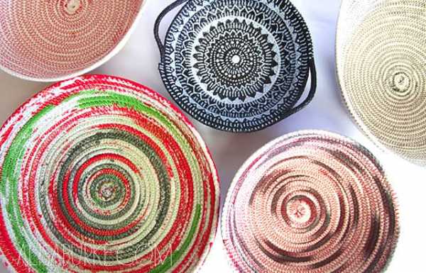 Коврики, панно и другие предметы быта из веревок.Для хлеба или мелких предметов кухонной утвари можно соорудить вот такие симпатичные емкости: