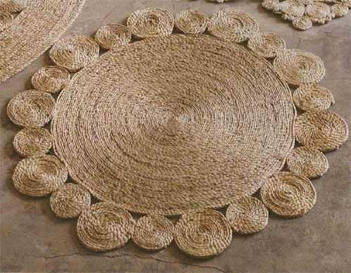 В данной статье собраны интересные идеи по созданию своими руками различных предметов быта для вашего дома из веревок, канатов или нейлоновых нитей. Вот, например коврики, скрученные из джутовой веревки(джутовая нить из мешков) или сизеля в кружки, затем скрепленные между собой или стежками плотной нити или горячим клеем. Кстати , таким же способом можно изготовить и оригинальное панно на стену, украсив его цветами из ткани, о которых шла речь в предыдущей статье. Посмотрите , какая красота: