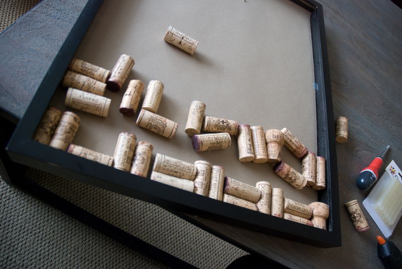 Некоторые проекты более масштабны и требуют большого количества винных пробок. Одна из них — идея, пришедшая от брит. Как вы можете видеть здесь, вы можете расположить винные пробки по определенному образцу, чтобы создать привлекательную настенную живопись.