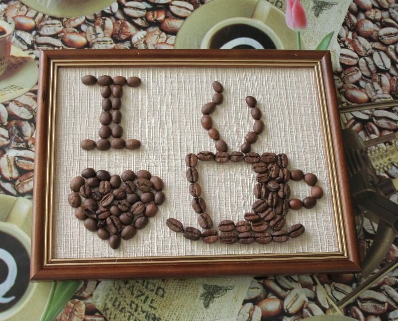 Используя кофейные зерна, можно заниматься созданием красивых картинок. Можно просто создавать шедевры и фотографировать результат, радуя своих друзей в Instagram. Если вам понравится созданное изображение и вы решите его сделать в виде картинки, то можно создать своими руками панно из кофейных зерен.
