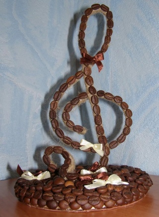 Если вы не знаете, как сделать из кофейных зерен своими руками украшение, то можете создать такую оригинальную поделку.