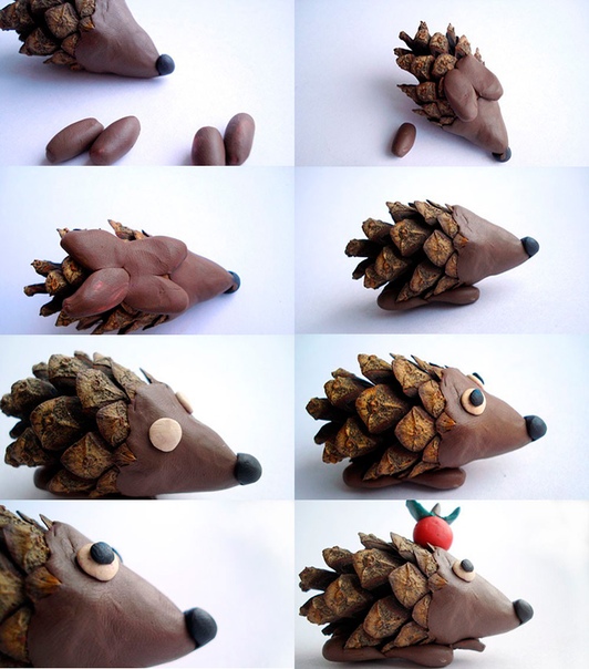 Чаще всего именно шишка становится основой для сувенира, а остальные элементы подбираются в ходе самой работы из подручных материалов.