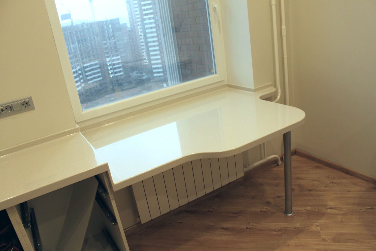Стол-подоконник представляет собой конструкцию, проходящую вдоль окна.