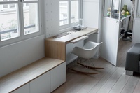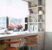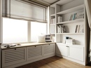 - Стол, встроенный в оконный проем, органично дополняется шкафчиками-пеналами.