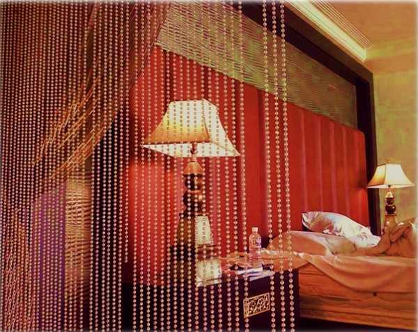 Являются достаточно эффектным подвесным декором, особенно выигрышно оформляющим дверной проем. Веревочные межкомнатные шторы-висюльки из тонких палочек или стекляруса, придают обстановке яркости, красочности и необычности.