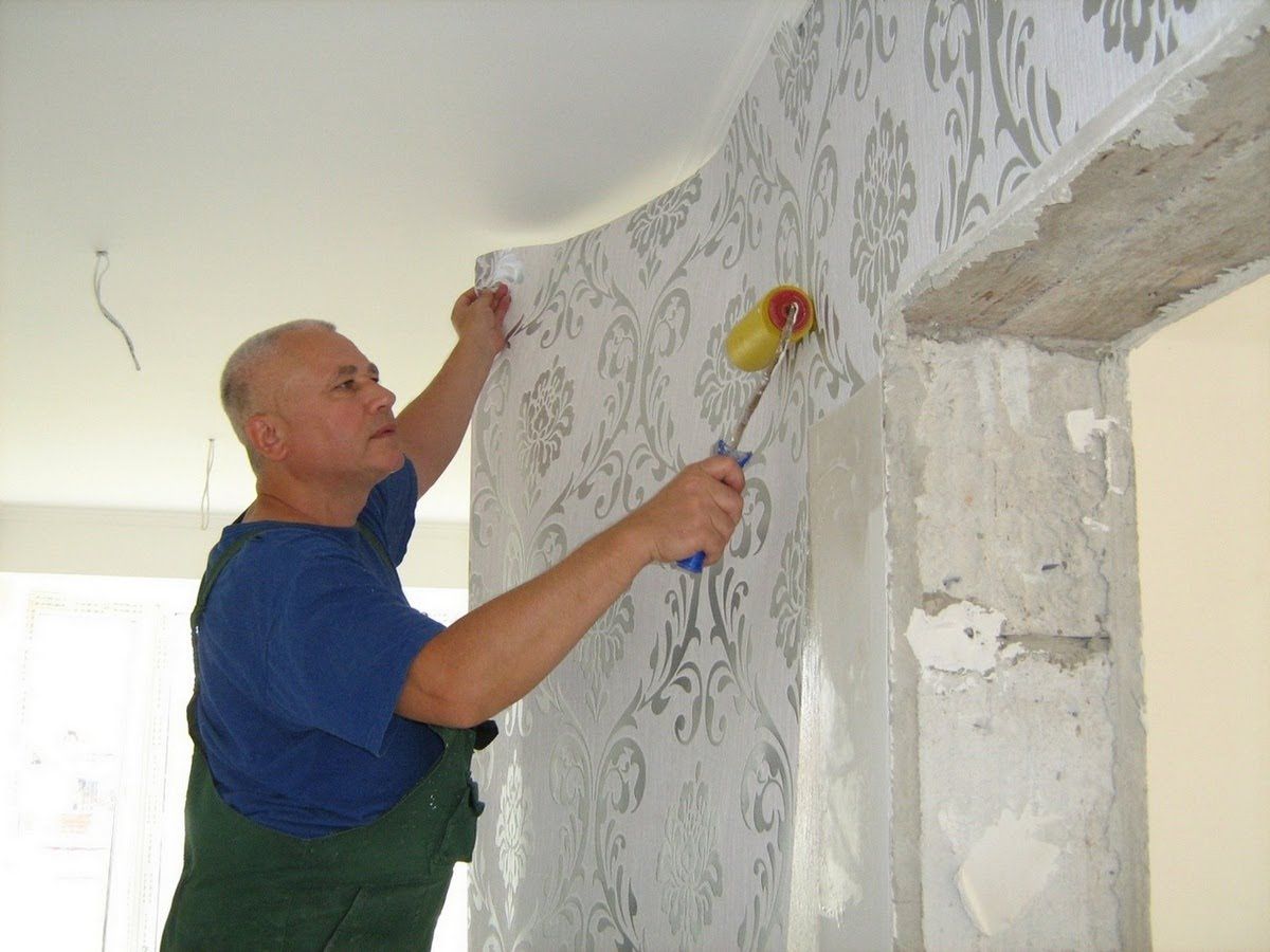 - Нанесение обоев на бетонные стены;