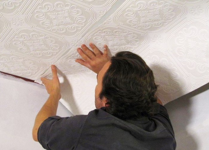 Виниловые обои на флизелиновой основе являются популярным материалом и для отделки потолка, при этом сама техника не имеет отличий от той, которая используется для стен. Разница в основном состоит в том, что потребуется учитывать световой поток с улицы для того, чтобы не выпячивать соединительные швы.