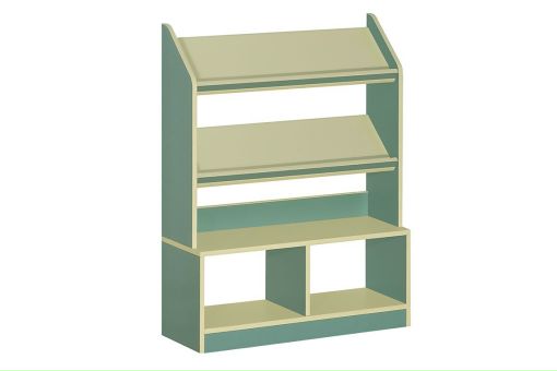 Книжный шкаф, предназначенный для книг в мягкой обложке, и верхняя часть, выполняющая роль прикроватной полки, изготовлена из переработанного ламинированного ДСП, обрезанного по размеру и просто вставленного в доступный зазор между основным книжным шкафом, описанным выше, и встроенной кроватью в каюте.