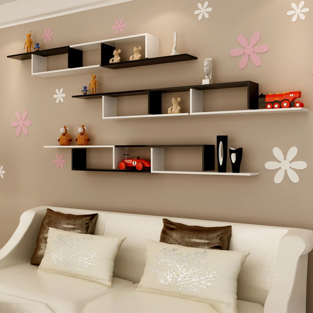 В последнее время многие предпочитают оформление гостиной в стиле минимализма. Для такого интерьера подойдут лаконичные прямые полки, на которых можно установить телевизор, несколько семейных фотографий и парочку красивых статуэток. Они станут прекрасным украшением пустующих стен. Для винтажного интерьера можно разместить полки в виде закрытых ящичков, выполненных из дерева. В качестве дополнения можно соединить их прямыми конструкциями, на которых расставить приятные семейные мелочи, свечи, декор.