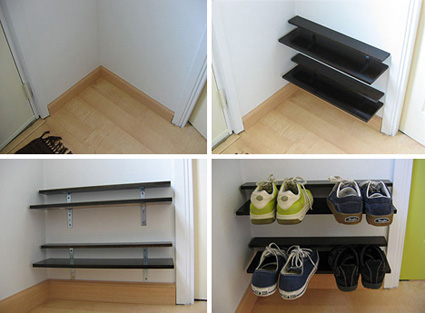 ΠΡΠ»ΠΈ Ρ Π²Π°Ρ ΠΌΠ°Π»ΠΎ ΠΌΠ΅ΡΡΠ°, Π²ΠΎΡ ΠΎΡΠ»ΠΈΡΠ½Π°Ρ Π½Π΅Π±ΠΎΠ»ΡΡΠ°Ρ ΠΏΠΎΠ»ΠΊΠ° Π΄Π»Ρ ΠΎΠ±ΡΠ²ΠΈ, ΠΊΠΎΡΠΎΡΡΡ Π²Ρ ΠΌΠΎΠΆΠ΅ΡΠ΅ ΠΏΠΎΡΡΡΠΎΠΈΡΡ ΠΈ ΡΠΏΡΡΡΠ°ΡΡ Π² ΡΠ³Π»Ρ ΠΈΠ»ΠΈ ΠΏΠΎΡΡΠ°Π²ΠΈΡΡ Ρ Π΄Π²Π΅ΡΠΈ. Π ΡΡΠΎΠΌ ΠΏΠ»Π°Π½Π΅ ΠΏΠΎΠ»ΠΊΠΈ Π΄Π»Ρ ΠΎΠ±ΡΠ²ΠΈ Π² ΠΈΠ½Π΄ΡΡΡΡΠΈΠ°Π»ΡΠ½ΠΎΠΌ ΡΡΠΈΠ»Π΅ ΠΈΡΠΏΠΎΠ»ΡΠ·ΡΡΡΡΡ Π΄Π΅ΡΠ΅Π²ΡΠ½Π½ΡΠ΅ Π΄ΠΎΡΠΊΠΈ Π²ΠΌΠ΅ΡΡΠ΅ Ρ ΡΡΡΠ±Π°ΠΌΠΈ, ΡΡΠΎΠ±Ρ ΡΠΎΠ·Π΄Π°ΡΡ Π²Π΅Π»ΠΈΠΊΠΎΠ»Π΅ΠΏΠ½ΡΡ ΠΌΠ°Π»Π΅Π½ΡΠΊΡΡ ΠΏΠΎΠ»ΠΊΡ Π΄Π»Ρ ΠΎΠ±ΡΠ²ΠΈ Π΄Π»Ρ Π»ΡΠ±ΠΎΠΉ ΡΠ°ΡΡΠΈ Π²Π°ΡΠ΅Π³ΠΎ Π΄ΠΎΠΌΠ°.