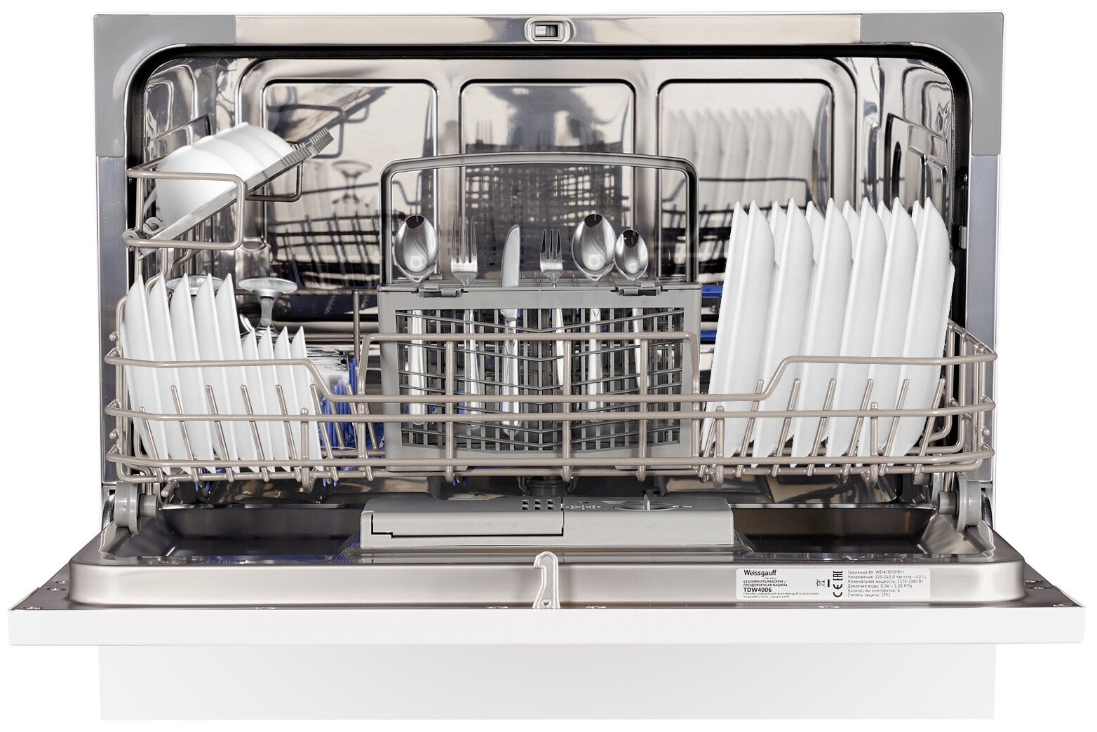 Эта характеристика измеряется в комплектах. Под стандартным комплектом подразумевают три тарелки (глубокую, плоскую и десертную), стакан или бокал, чайную пару (чашку и блюдце), столовые приборы (три ложки, вилка, нож). На рынке представлены модели вместимостью от 4 до 15 комплектов.