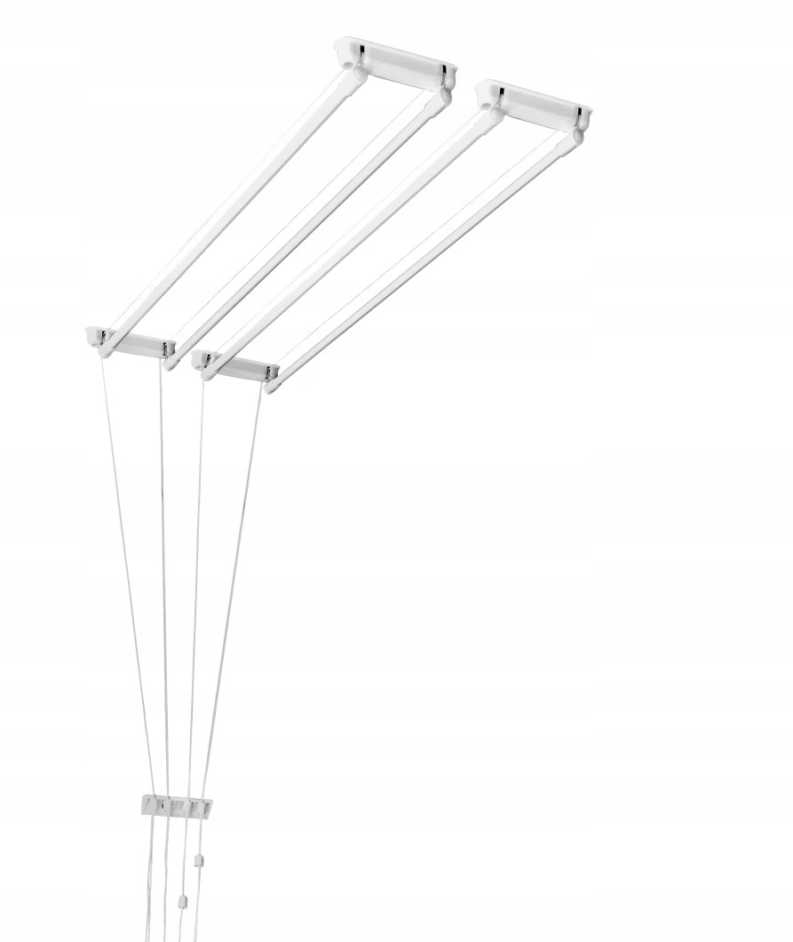 Конструкция представляет собой два жестких траверса и несколько перекладин, натянутых между ними. Спускать и поднимать ее можно посредством шнура, переброшенного через потолочную балку. Делать это можно вручную либо с помощью ручного редуктора. К недостаткам такой конструкции можно отнести ее неустойчивость (белье необходимо развешивать максимально равномерно, чтобы сушилка не накренялась в одну сторону). - Есть и более сложная разновидность сушилки с лифтовым механизмом. Она имеет форму параллелограмма, достаточно устойчива и надежна.