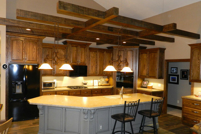 Современный интерьер можно легко облагородить с помощью балок в сложной и изысканной цветовой гамме, а популярную сейчас обстановку в стиле кантри можно удачно дополнить деревянными массивными балками.