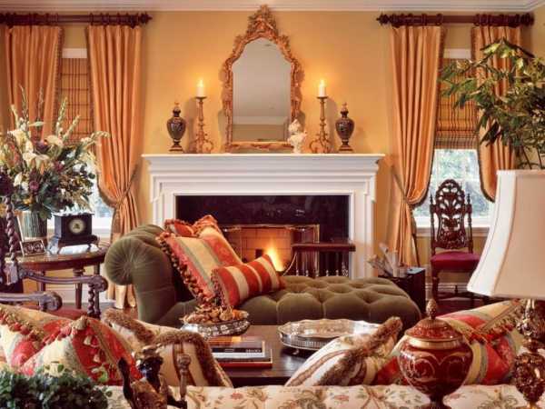 Камин – это обязательный атрибут кантри стиля и гостиная комната подходит для его расположения лучше остальных.