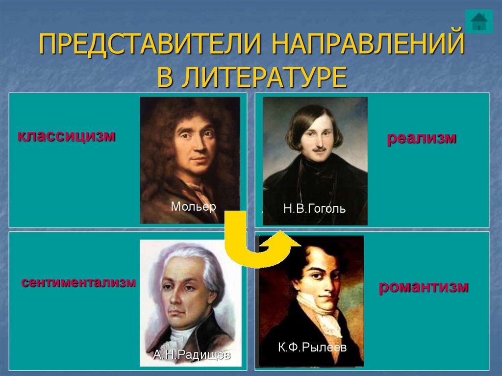 тесно связала с общностью мировоззрения писателей. Кроме того, писатели одного и того же направления объединены общностью проблематики своих произведений, общей эстетической программой, а иногда – и общими свойствами художественной манеры, стиля.Литературное направление классицизма (в России – Ломоносов, Сумароков, Державин, Фонвизин, отчасти Крылов) основывалось на мировоззрении рационализма – культе Разума. Метод классицизма сводился к довольно абстрактному противопоставлению добра и зла, добродетели и порока, положительных и отрицательных героев. Классицисты призывали писателей