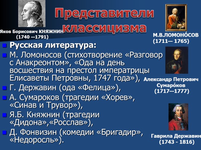 Представители русского классицизма: Представители русского классицизма 🤓 [Есть ответ]