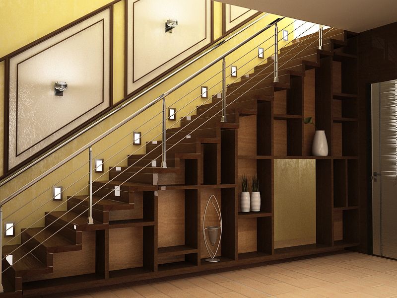 Варианты обустройства пространства под лестницей