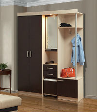 Ни одна прихожая не обходится без вешалки и обувницы. Шкаф лучше выбирать с раздвижными дверками.