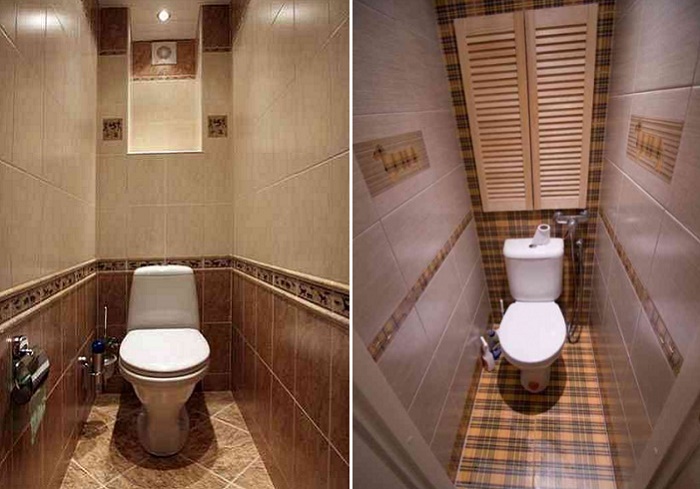 Туалет с укладкой обычной плитки – керамогранита и мозаики