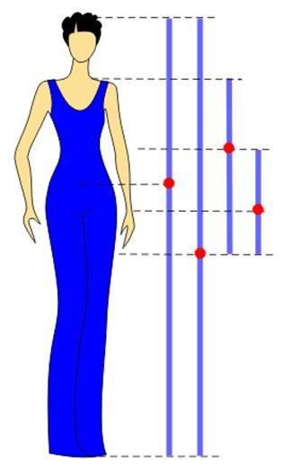 Наверное, только ленивый не перепостил этот рисунок, пытаясь доказать важность золотого сечения в костюме. Только важность это надуманная. Даже для выбора длин принцип золотого сечения имеет ограниченное применение.