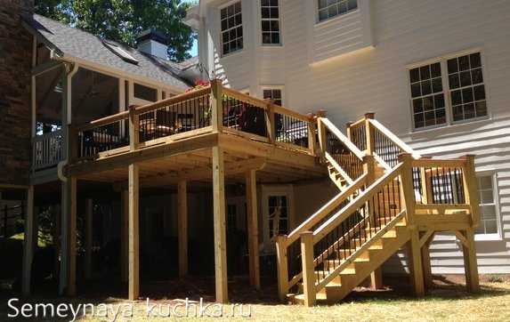 Терраса может быть намного просторней веранды и иметь необычную форму