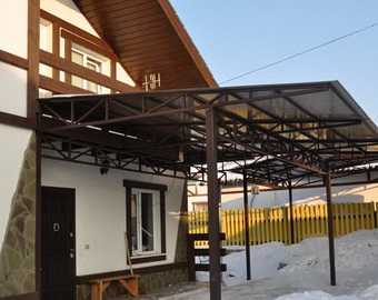Варианты навесов пристроенных к дому из профнастила: фото и особенности конструкции