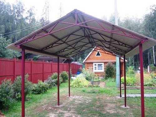 Кровлю обычно покрывают профлистом, шифером или оцинкованным материалом. Металл для каркасной конструкции обладает пластичностью и прочностью. Он подходит для разных стилей оформления. Подобные конструкции можно возводить своими руками.