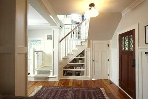 В процессе обустройства прихожей возникает вопрос об использовании пространства под лестницей. Это место можно использовать с максимальной пользой: