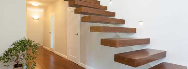 Конструкция схожа с лестницей на больцах, но в этом случае ступени не связаны между собой, а фиксируются на специальных подвесных стержнях с одной стороны и больцах – с другой. Подходит для стилей лофт, хай-тек и минимализм. При этом окружающее пространство должно быть максимально органичным, поскольку будет просматриваться с всех сторон.