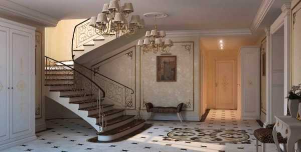 Классический интерьер выделяется строгими лаконичными формами и спокойной цветовой гаммой. Для стиля характерно наличие завитков, балясин и резных элементов. Не стоит перегружать холл лишними предметами, а в качестве мебели выбрать подходящие варианты: