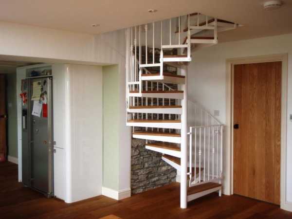 Винтовая лестница подходит для небольших домов, так как занимает намного меньше места
