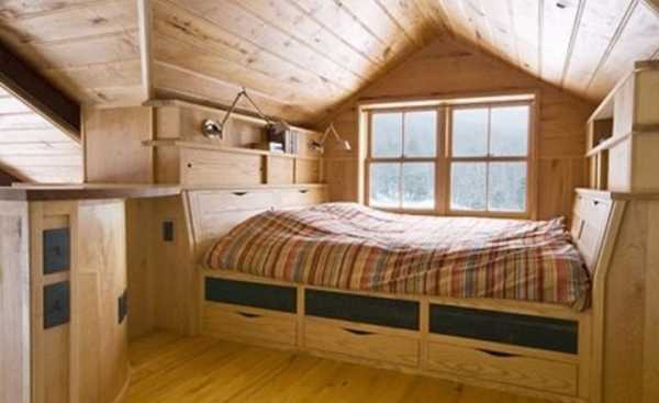 Даже маленькую мансарду можно обставить так, что в ней поместится все самое необходимое. Наклонные плоскости потолков частично скрадывают общую площадь, но можно использовать их для стильного оформления комнаты.