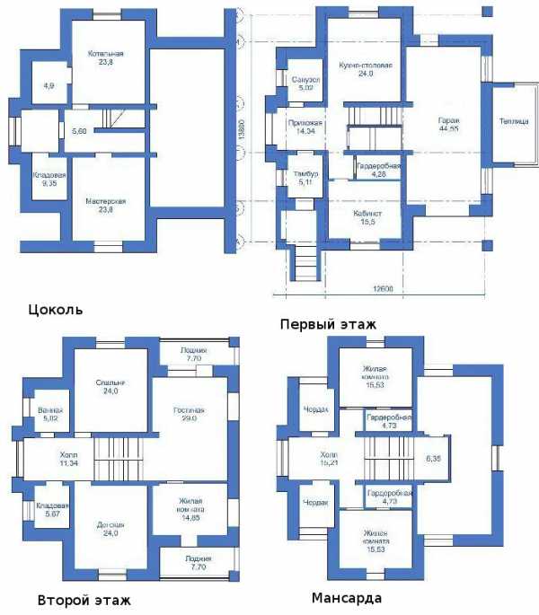 Если грамотно продумать и спроектировать цокольный этаж с мансардой, то здание не только станет просторным, но и будет считаться почти трехэтажным домом. Главное достоинство двухэтажного дома с мансардой – большая жилая площадь, стоимость которой ниже, чем полноценного дома в три этажа.