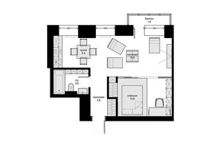 8. Однокомнатная квартира-трансформер площадью 40 кв.м.