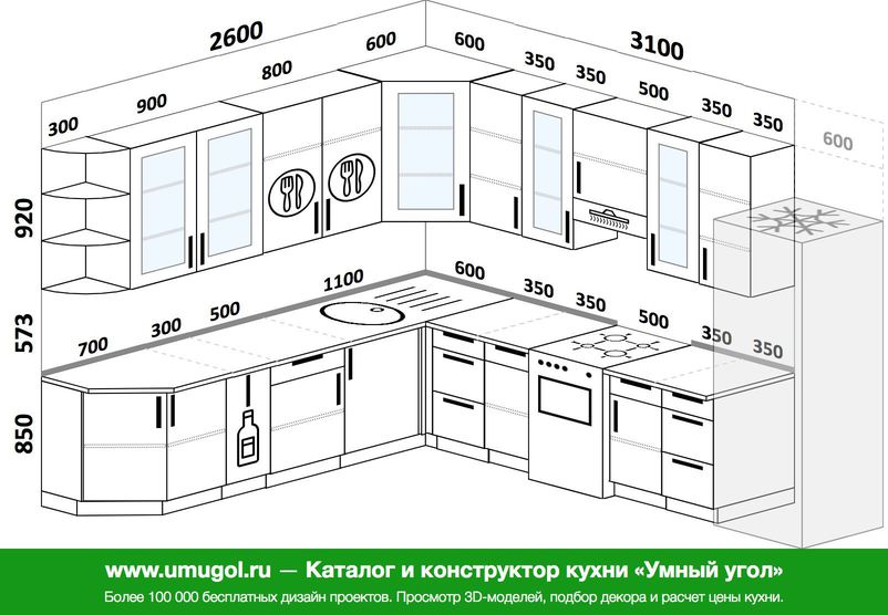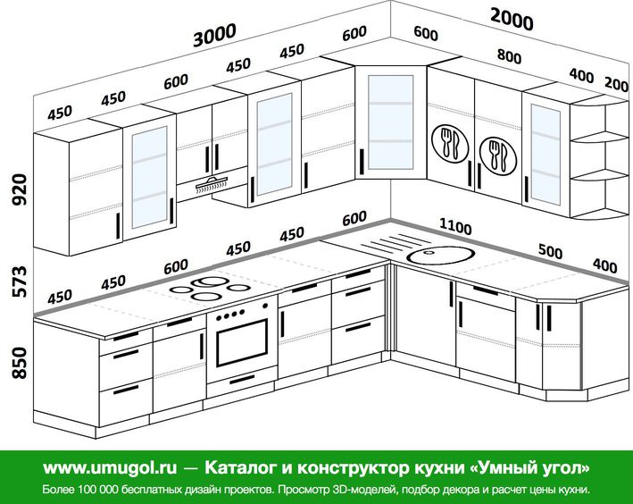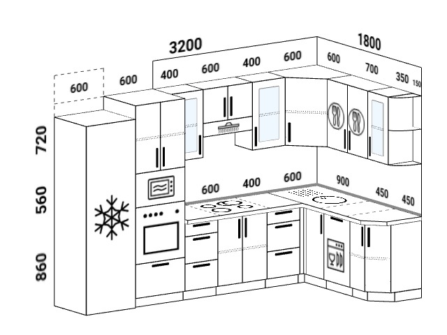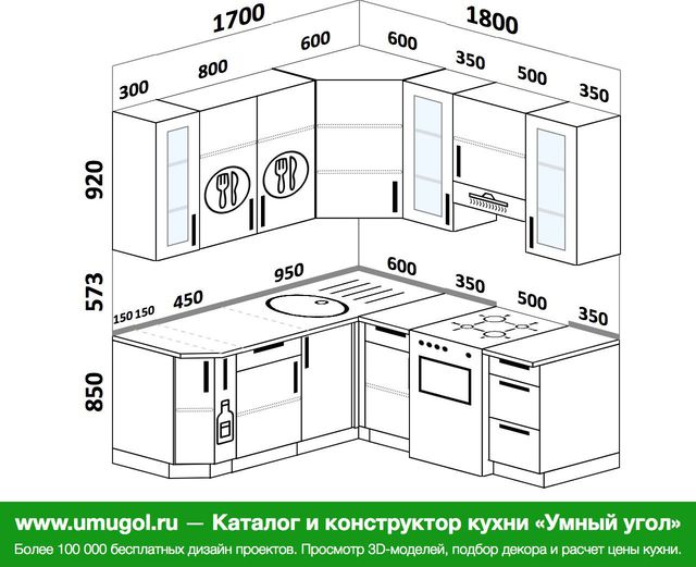 L-образная кухня Размеры и чертежи