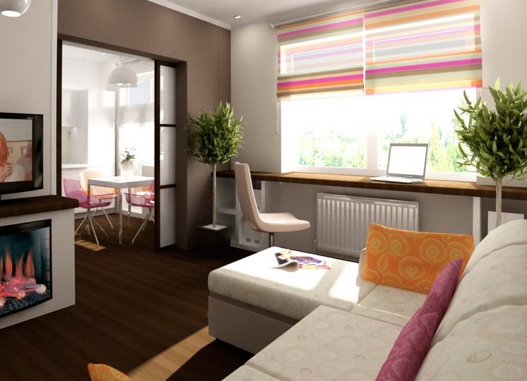 Проходная гостиная в хрущевке – маленькая, узкая и темная комната, поэтому объединение с другим помещением сделает ее более светлой и просторной, позволит с большей пользой организовать пространство. Кухня-гостиная – это уже привычный, многим полюбившийся прием расширения комнат. Увеличить пространство можно также за счет присоединения лоджии. В таком случае вы получите больше вариантов расстановки мебели, не оглядываясь на доступность выхода на балкон. Объединение кухни и спальни – редкий прием, эту зону обычно стараются изолировать, однако легкие полупрозрачные перегородки из оргстекла или воздушного текстиля предпочтительнее для сбалансированной композиции, нежели глухие стены. Из квартиры с проходным помещением можно сделать просторную студию, где изолированным останется только санузел.