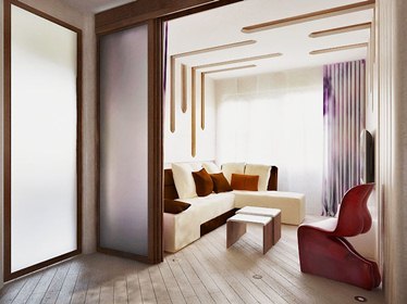 Они оформляются несколькими различными способами, предпочтительны раздвижные конструкции – данное решение не займет лишнего места, так как при постоянном хождении туда-сюда их вряд ли будут закрывать. От дверок в коридор, кухню можно вообще отказаться, а остальные – перенести. Не следует без необходимости злоупотреблять перегородками в гостиной — ими разве что отделяют спальное место, кабинет для работы, если нет возможности разместить их в закрытых комнатах.