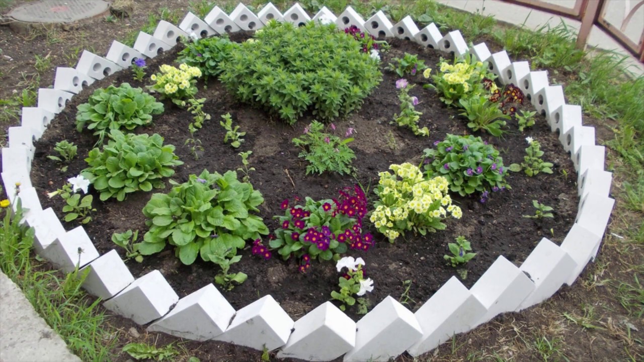 Если на вашем участке после строительства дома остались кирпичи, используйте их в декоре цветника. Делая клумбу из кирпичей или камня, понадобится цементный раствор и навыки кладки кирпича.