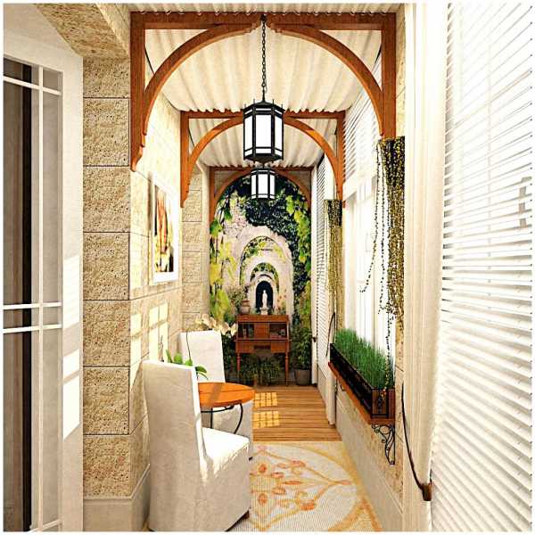 Если бледные стены вам не по душе, оформите их декоративной штукатуркой или керамической плиткой, имитирующий сырцовый камень. Лоджия обретет другой вид!