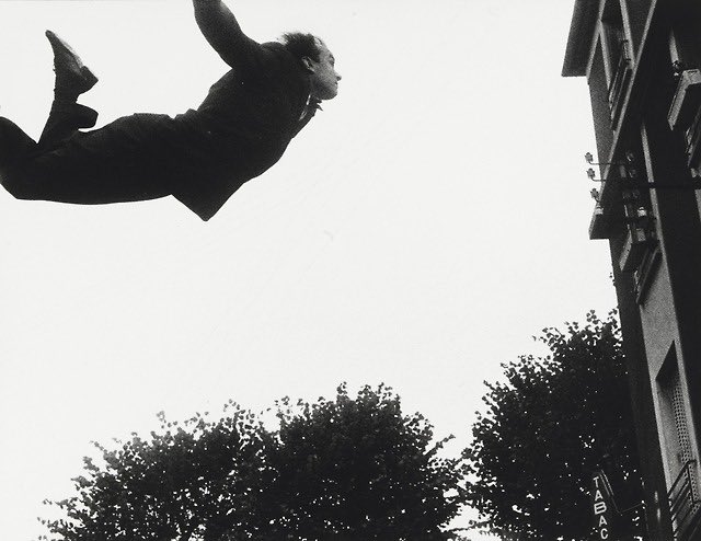 Кляйн прыгает в пустоту . Пустота — это философская концепция проявленного ничто. О прыжке в пустоту. Чтобы рисовать пространство, я должен быть на месте.
