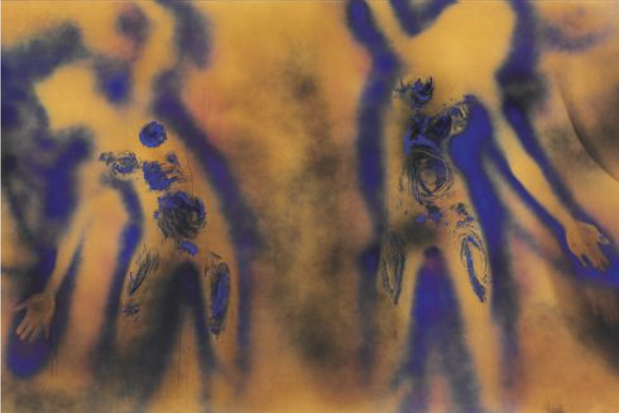 В 1960 г. Кляйн создал свои первые антропометрии. Антропометриями он называл картины, созданные при помощи отпечатков женских тел на полотне.