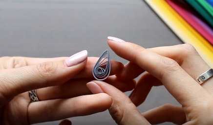 Для создания этого красивого элемента вам понадобиться сначала скрутить свободную спираль. Затем ненадолго сдавить пальцами элемент с одной стороны. Если при этом вы слегка изогнете острый уголок — капля получится еще выразительнее.