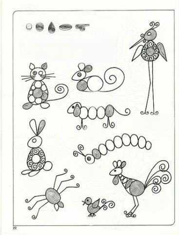 Вместе с ребенком вы можете попробовать скрутить из бумажных полос таких забавных животных и персонажей.