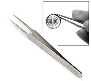Пинцет. Бывают пинцеты с разными носиками, самый популярный — с угловым носиком, т.е., носиком опущенным вниз. Но можно использовать и канцелярский пинцет (при отсутствии такого можно взять пинцет из маникюрного набора). Пинцет используют не только для того, чтобы выкладывать готовые модули при сборе, но и для того, чтобы плотно прижать им кончик бумажной полосы к спирали при приклеивании.