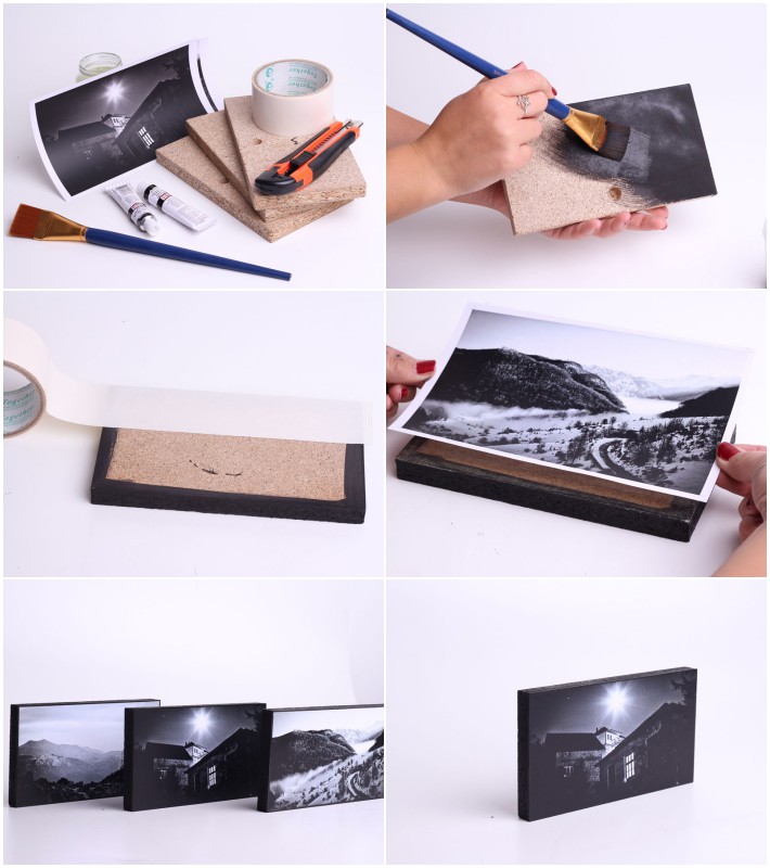 Коллажи, наравне с картинами из нескольких частей, являются хорошей альтернативой обычным фоторамкам, где, как правило, используется один снимок. Для изготовления понадобится лист фанеры и электролобзик. Главным преимуществом создания таких крупных импроивизированных рамок для фото является возможность размещения на небольшой площади нескольких десятков снимков, расставленных в заданном порядке.