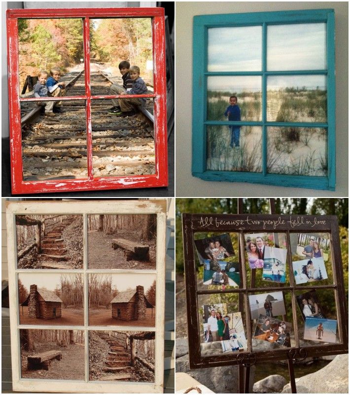 Еще одна идея — переназначить старое окно в качестве рамы. Он также будет выглядеть в деревенском стиле, но больше подходит для картины или плаката, чем для фотографии. Вы можете заменить стекло, если хотите, и вы также можете покрасить раму. {Найдено на keeponringing}.