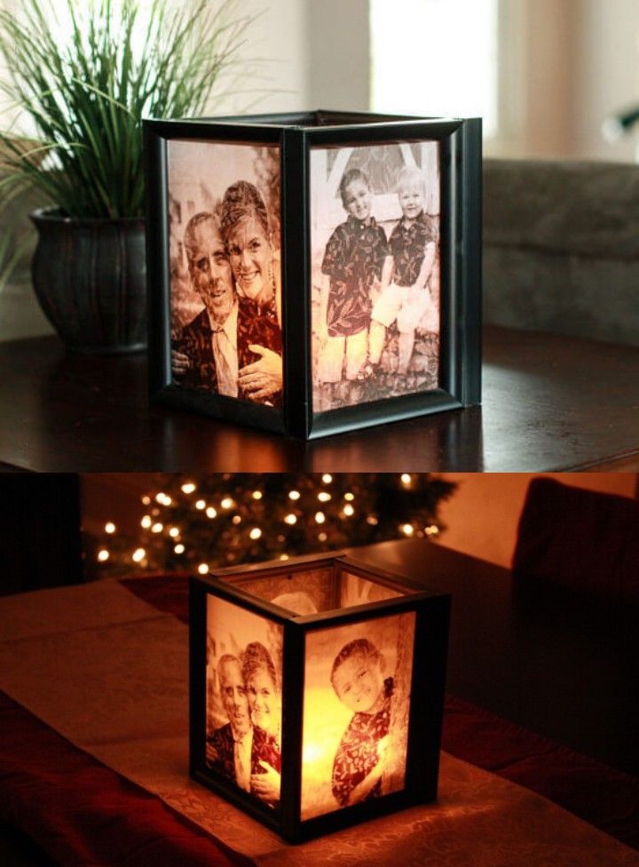 Ищете уникальные идеи для фоторамок? Построить деревянную раму с открытыми пространствами для вставки чайных ламп на батарейках. Этот светлый декор хорошо работает в подвале, логове или на закрытой веранде.